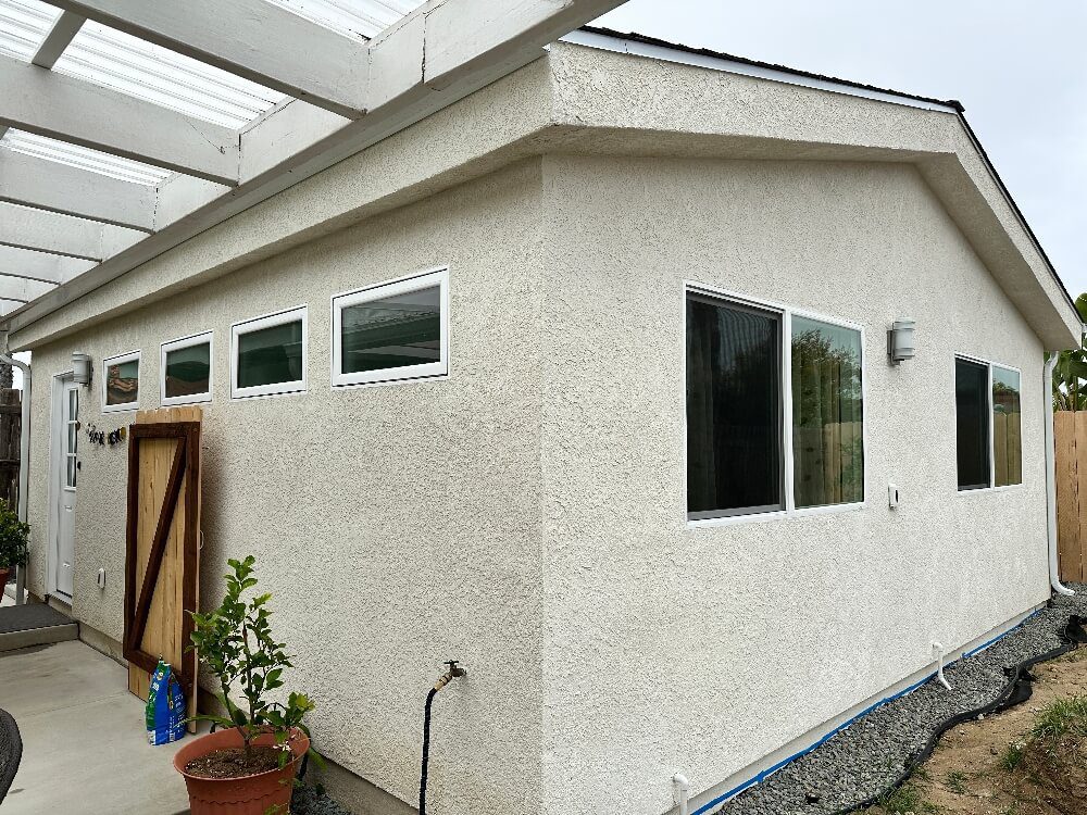 Mo’s Stucco managed the full ADU build, helping the homeowners select the right stucco texture and finish to achieve their vision. We used a combination of Quick Lace and Basic Sand Coat for a clean, sleek appearance that gave the new unit a fresh, contemporary look, actually enhancing the overall curb appeal of the entire property.
